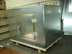 Laminated wood core panels with galvanized steel on both surfaces. The series will provide 100db min. to 120db max. of attenuation from 14 KHz to 10 GHz when subject to electric fields and plane waves. 100 dB attenuation from 10 KHz to 40 GHz Available Series 26 panels are interconnected with a framing system to form the enclosure. Enclosures are completely assembled at the factory. Can be dismantled, transported, re-erected, and still maintain their attenuation capabilities. Parts are all numbered to enable customer to install chamber rapidly. (If shipped dismantled) |